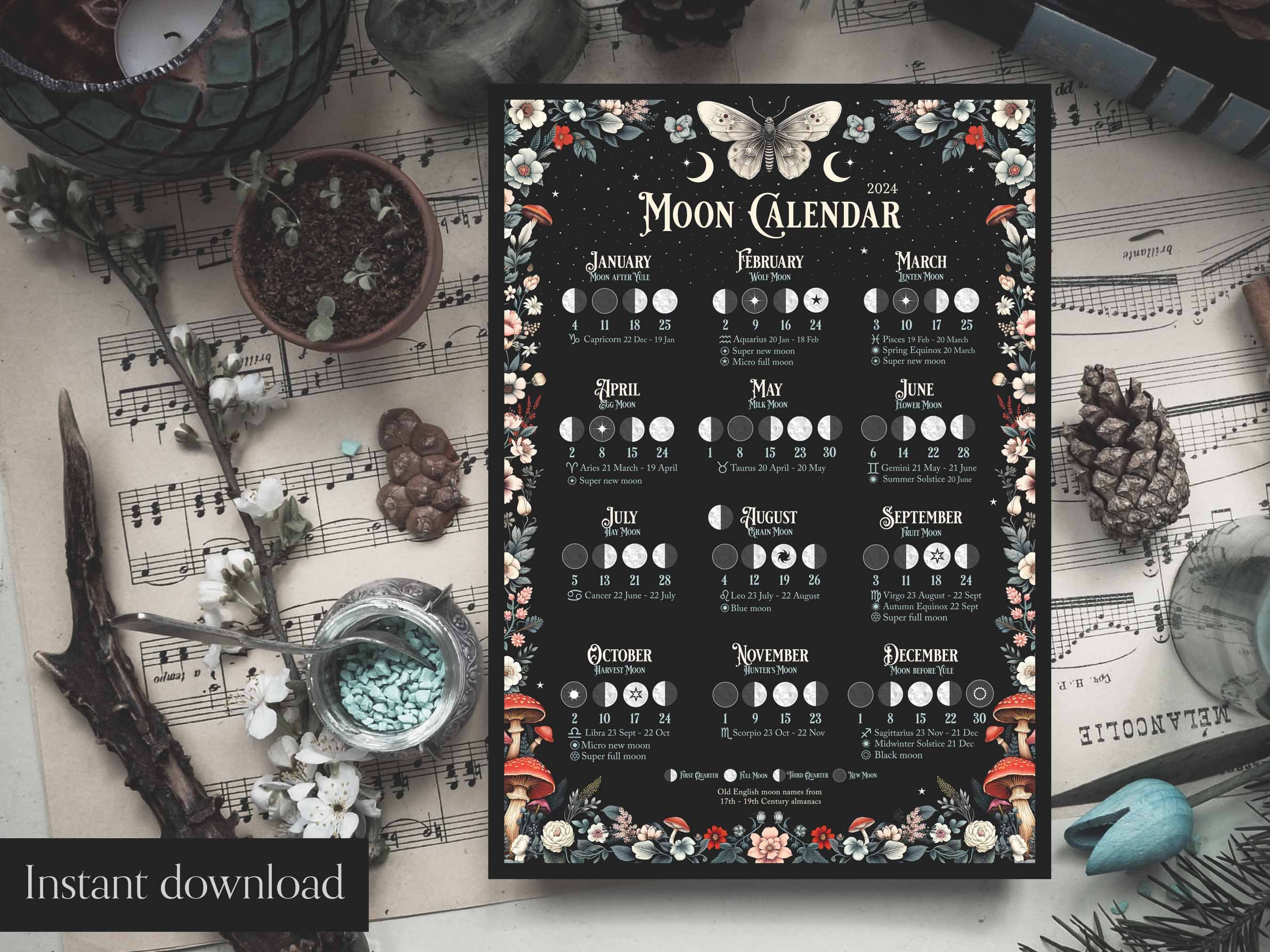 Moon Calendar 2024 Lunar Calendar Printable Poster. Witch Etsy